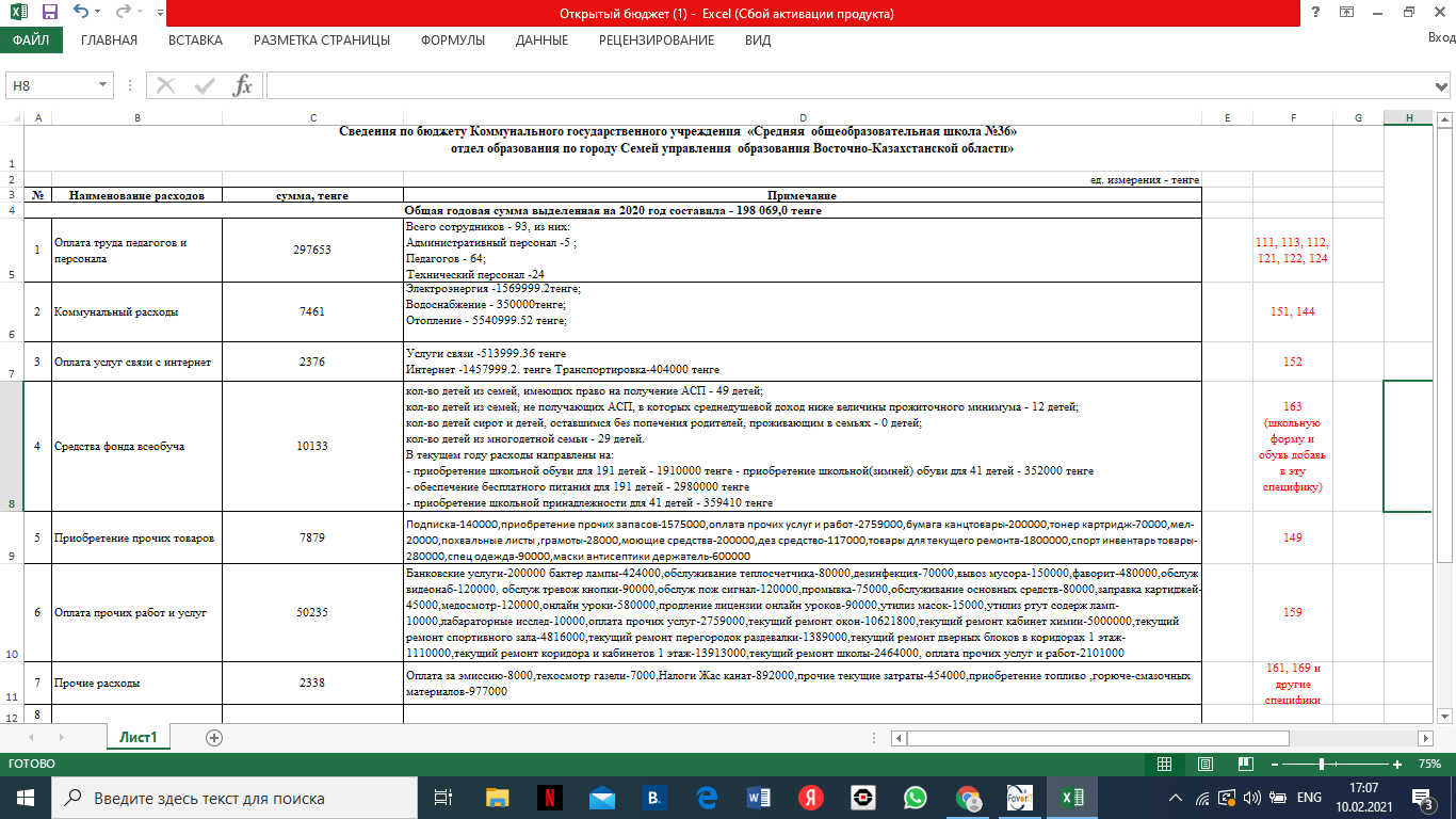 Сведения по бюджету Коммунального государственного учреждения 2021г » Средняя общеобразовательная школа №36